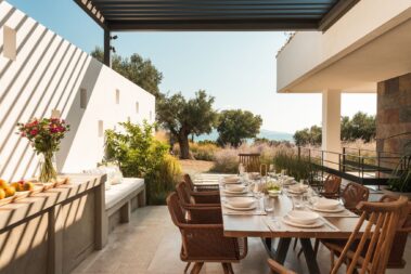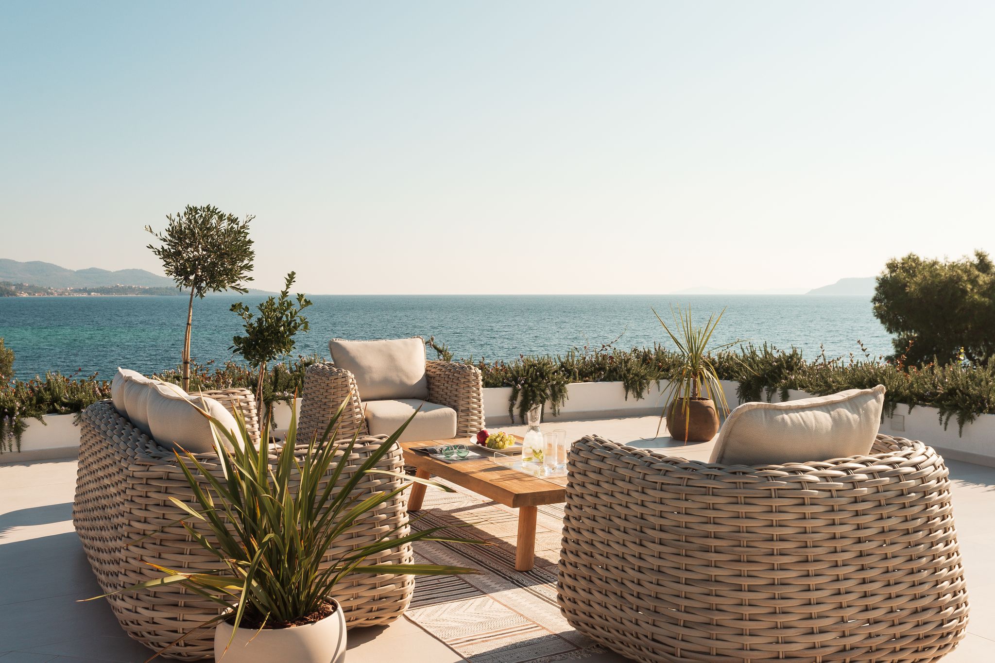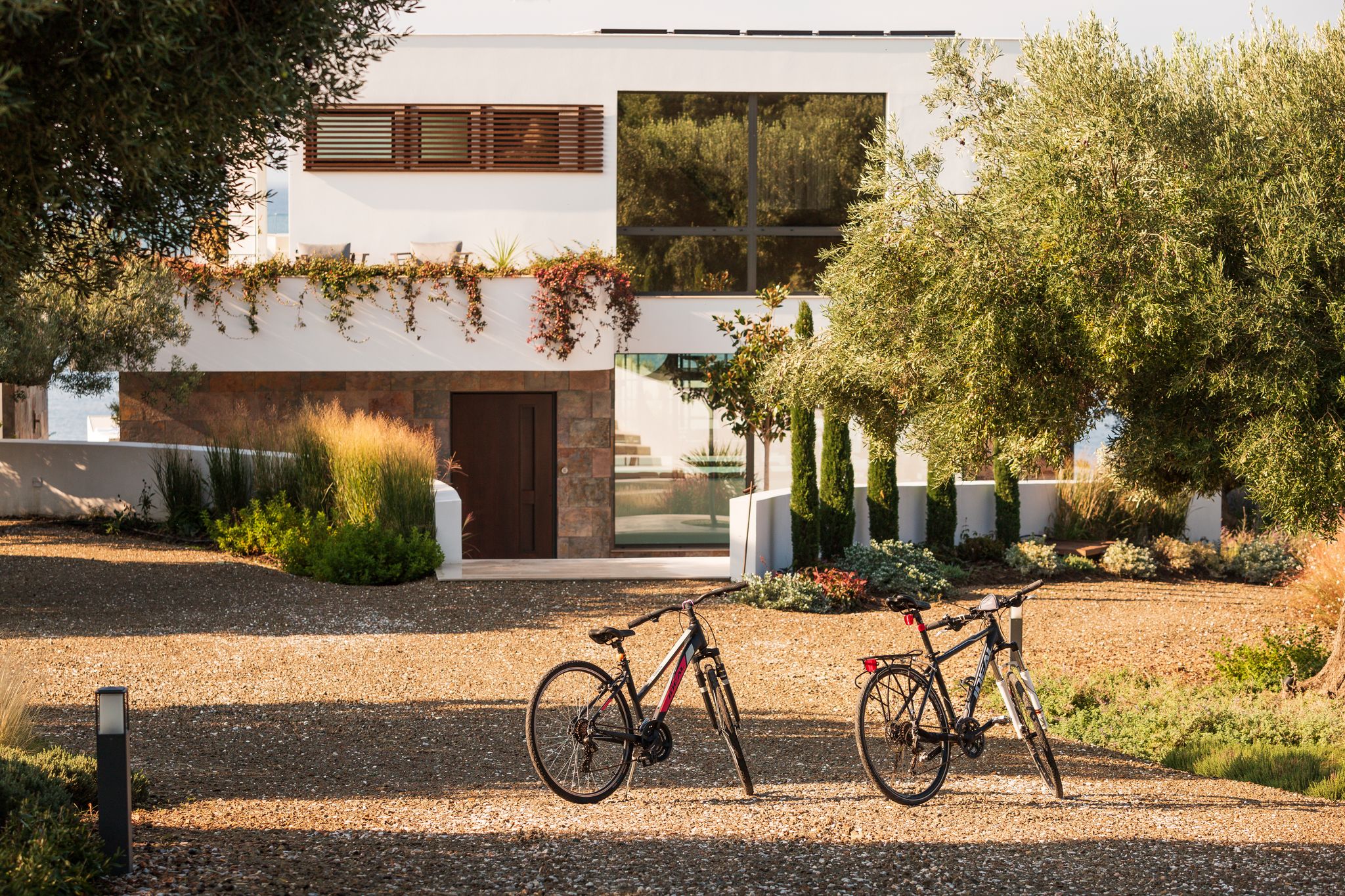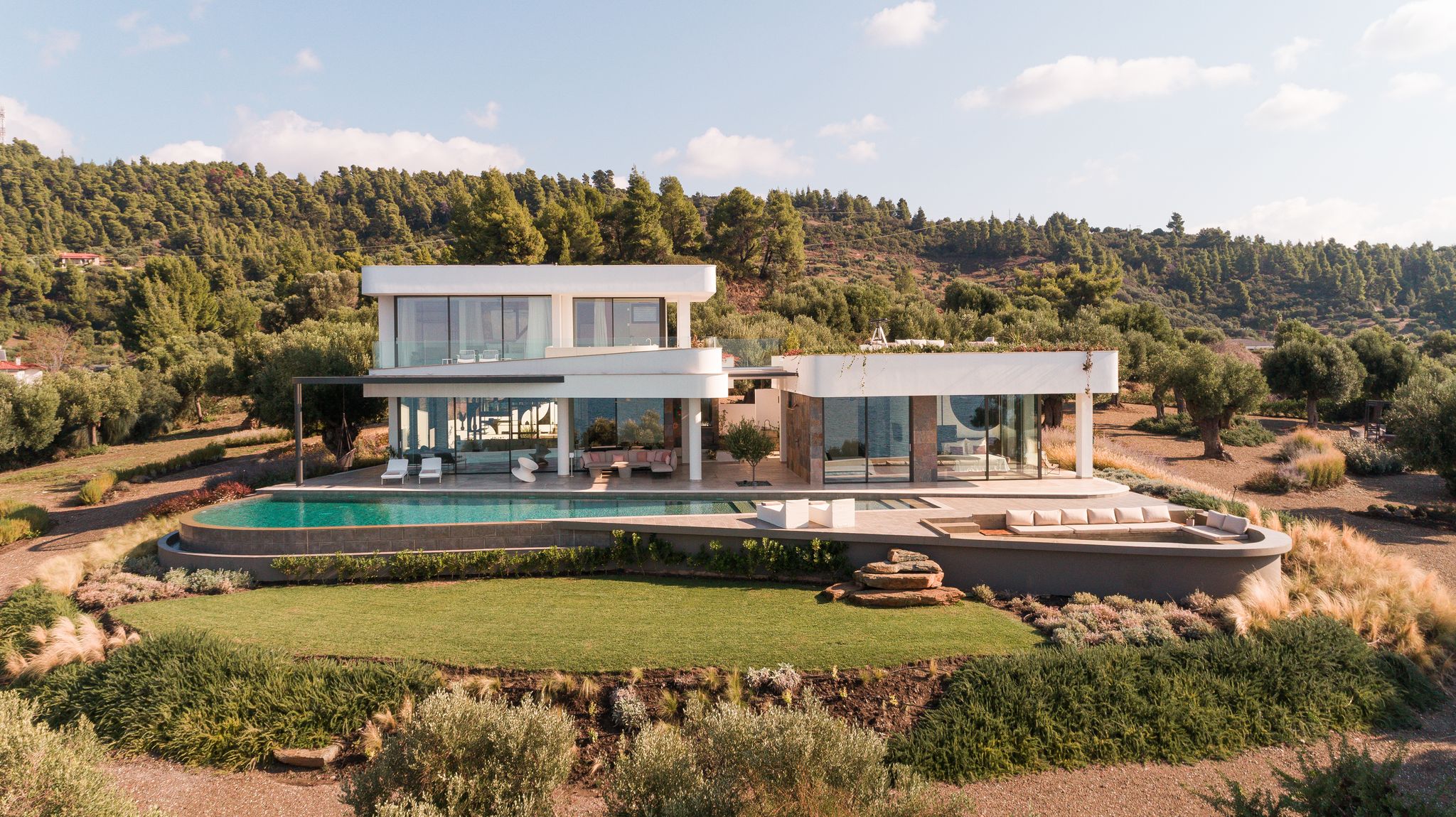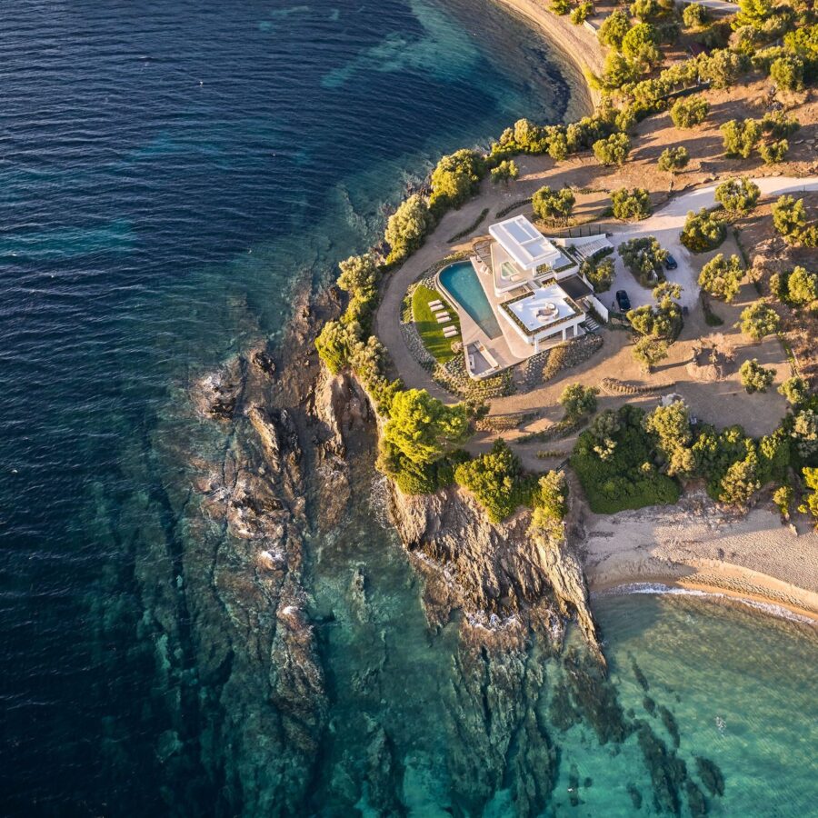 Dikoarch is a Luxury Villa In Greece. A residence which is located in a pure cape at Lagomandra, Sithonia, Halkidiki, Greece. A vacation house. A residence to experience luxury and serenity in completely harmony with its natural surroundings, Greek sunlight and the presence of water. A spot . An ancient olive grove. A unique scene, where the sun sets and the Mount Olympus is emerging, offering its view to the moon that rises up. A place full of dawns and sunsets, storms and rainbows, colors and scents. A spectacular scenery between indoor and outdoor spaces where life turns to be amazing and the vacation days acquire unique features unforgettable moments and unique experiences.