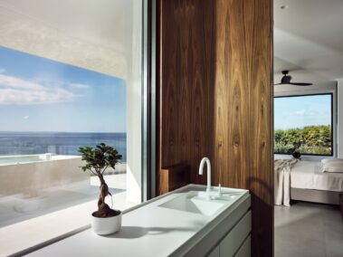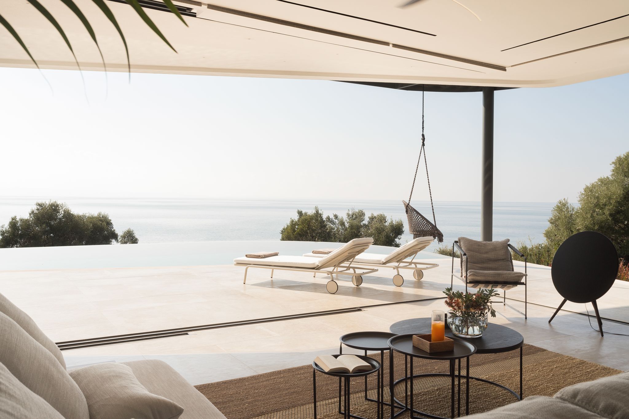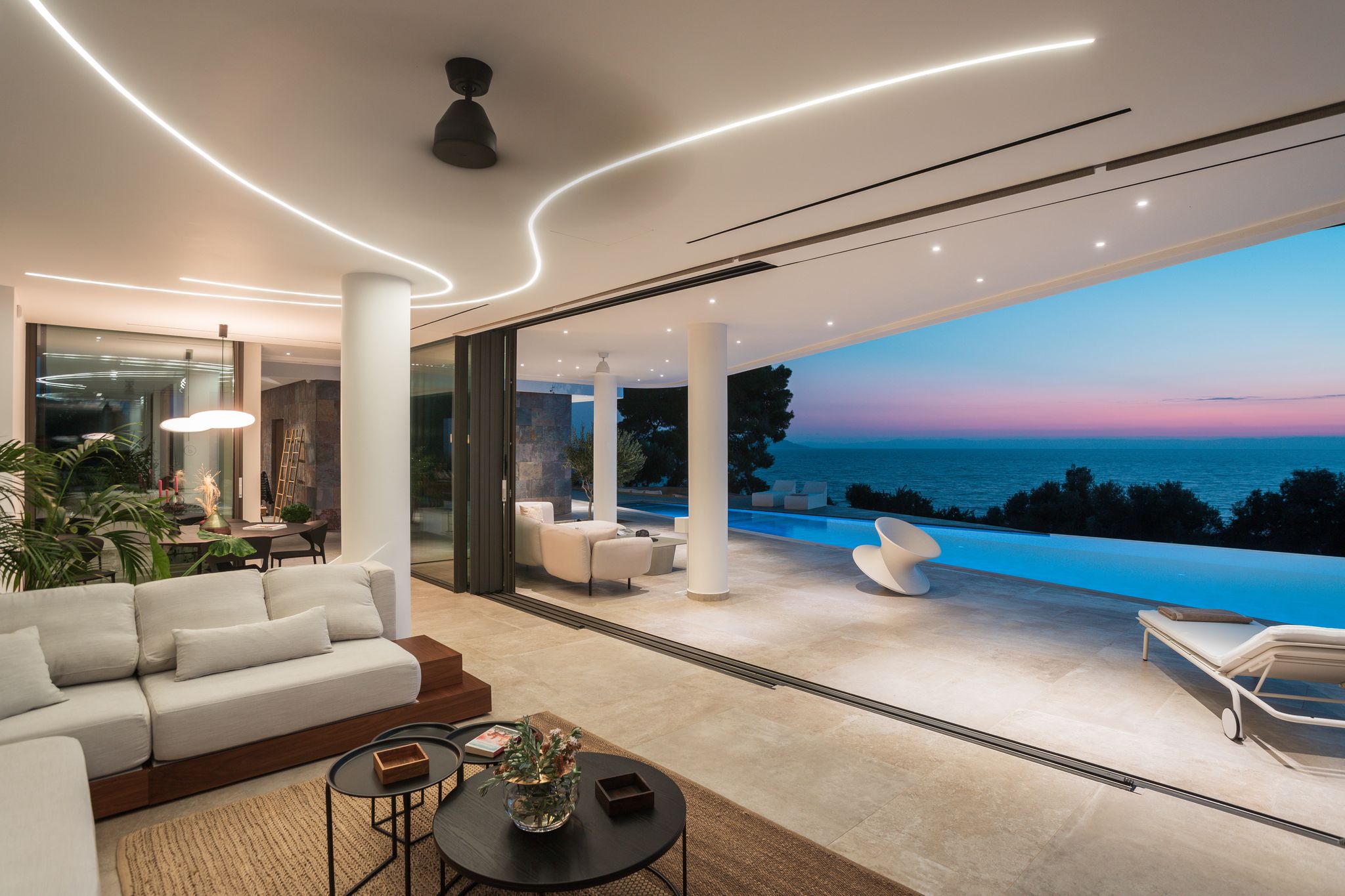 - The outdoor swimming pool – which is 120 square meters long – and it looks like the element of the sea is part of the living room.