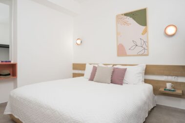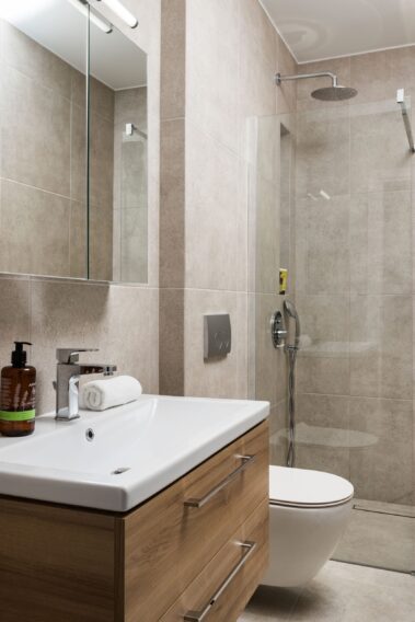 At the nearby second building, on the ground floor two more en-suite bedrooms are located which have their own privacy.